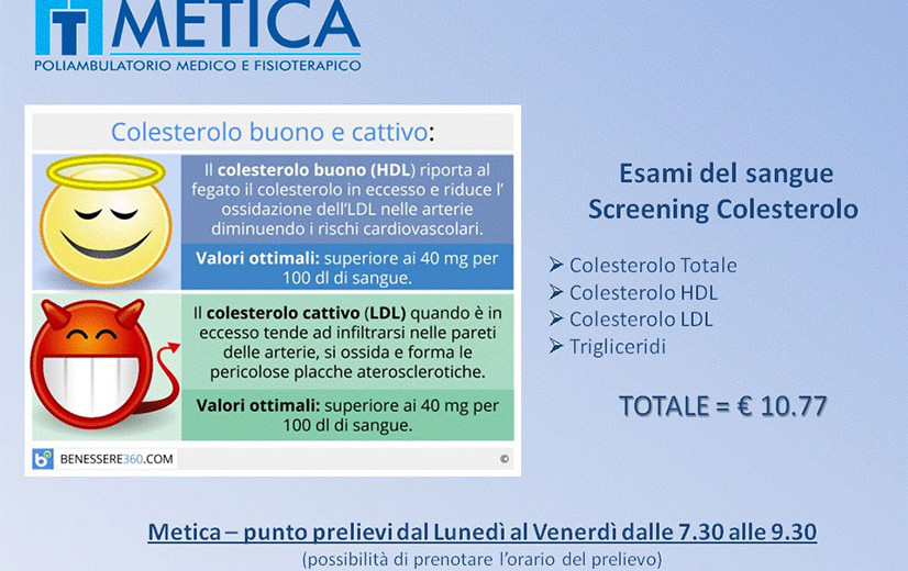 - una concentrazione troppo alta di colesterolo (ipercolesterolemia) e trigliceridi rappresenta un importante fattore di rischio per l’insorgenza di malattie cardiovascolari.